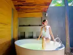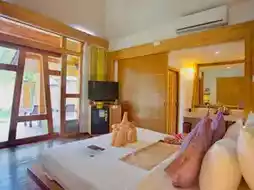 We stayed in the Honeymoon Beach View Bungalow With Jacuzzi, which was spacious and had 2 types of bathrooms