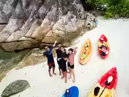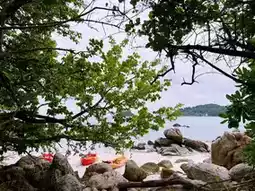 🏝️You can reach this island by boat or paddleboard, or by taxi boat. The island isn't very large, with a small sandy beach. You can climb up to the rocky peaks for a view.