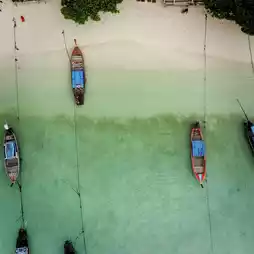 Here in the morning, the tide is low, you can see the white beach, very beautiful.