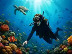 • Colorful coral reefs, schools of Nemo fish, sea turtles, and blacktip reef sharks (safe)