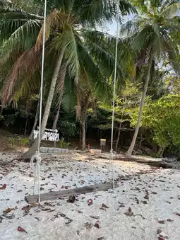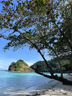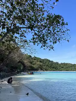 🏝️ The atmosphere here has a lot of shade trees. The trees provide shade along the beach. It is not hot. It is suitable for escaping from the big island to sit and relax or play in the water in a very private way.