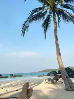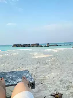 It's a great place to relax or swim. Most visitors are foreigners, but there aren't many Thais. During low tide, you can see the sea parting. However, when I visited, it had just rained and the tide was high, so I didn't see it.