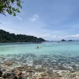 Koh Rang is an island that is famous for snorkeling. There is also a beautiful beach in the south of Koh Rang called Hat San Chao. There is a long bridge to walk to the beach. The water is very clear. You can see the fish and sand under the water. The sand is white and fine.