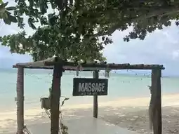 There are soap and shampoo provided. You'll get towels when you check in. The hotel has a private beach, a working space, and a swimming pool. There's a restaurant and massage services.