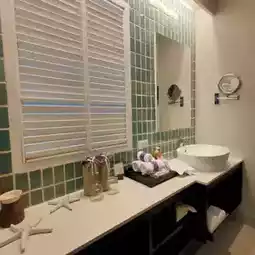 The atmosphere is shady and quiet, perfect for a relaxing day. There are complete facilities, including a spa, a cute cafe in front of the hotel, and a beach bar where you can chill out. You don't have to go anywhere to relax here.