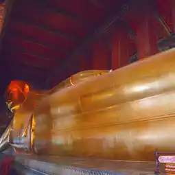The golden reclining Buddha, built by King Rama III, is 46m long and 15m high, making it very impressive.