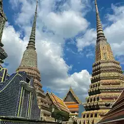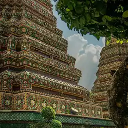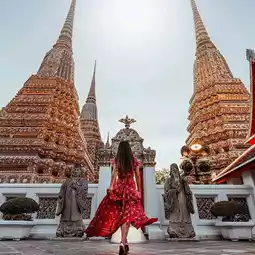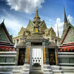 The highlight of this temple is the giant golden 150 feet long reclining Buddha. The surroundings of the temple have a few pagodas and Wat Pho is just within walking distance (approximately a 10-minute walk) from the Grand Palace.