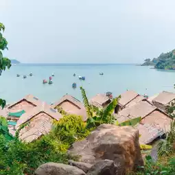 Before going back, we stopped by the Moken village, where everyone in the village has the same last name, “Kla Talay”. We took a leisurely walk. This time, the guide recommended us to go up to the viewpoint. Actually, I had been to this village before but never went up there. This time, since I was here, I decided to try it once. It wasn’t far, only 100 meters. When we got there, the view we saw was the village’s rooftops contrasting with the blue sea. Wow!
