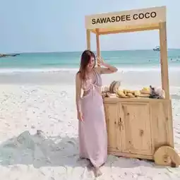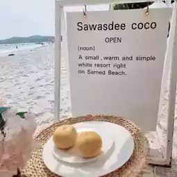 Sawasdee-coco Khosamed 🏖🥥 A cafe on Koh Samet, Rayong Province, not far from Bangkok. It's about a 3-hour drive, a 30-minute boat ride, and a 10-minute motorbike ride to the cafe.