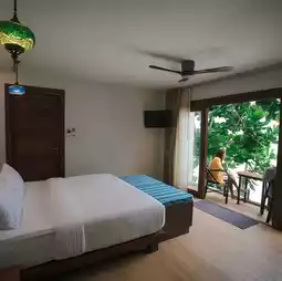 📍The beach front room has a very beautiful view, you can see the sea from the bed
