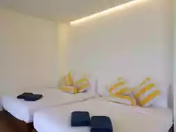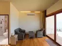 🛖As for the rooms, there are only a few rooms here, but every room is very close to the sea. We stayed in a family Beachfront room that can accommodate 4 people, located on the 2nd floor, with a balcony with a 180-degree view of the sea. Or you can lie down and relax and look at the sea view from the bed. The room has 2 large beds, a sofa, an en suite bathroom, a smart TV, and other amenities.