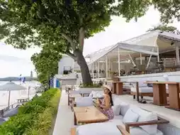 👉A super cool beach club by the sea, which is a super chic cafe during the day and a super chill bar at night, serving both food and drinks, with a fire baton show every night.