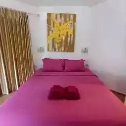 🛖🛖 The accommodation here is a small, brightly colored house located on the beach that you can see from your room. You can listen to the sound of the waves and walk down to sit and relax. There are swings and canvas beds that you can use for free. If you want to go snorkeling, you can rent equipment for 150 baht per hour. Breakfast is a buffet of Thai and American food.