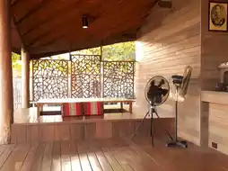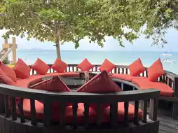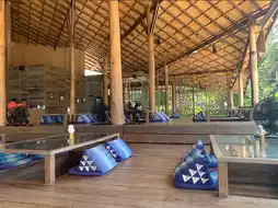Baan Ploy Samet is a restaurant in the Baan Ploy See Hotel group. It is located next door. The shop is decorated as a giant Bali-style hut. It has a good atmosphere by the sea. At night, the lights are beautiful and romantic. The food is delicious. The price is quite high.