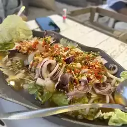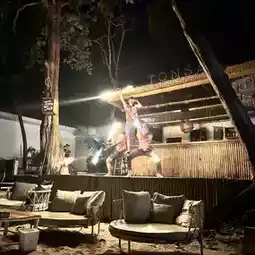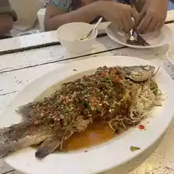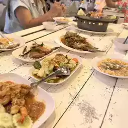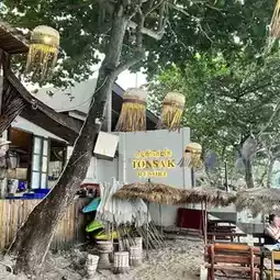 Ton Sak Restaurant is a restaurant on Koh Samet. This restaurant seems to be famous because there are a lot of people coming to this restaurant. If you order in advance, you won't have to wait long for your food. The price is the same as the general island rate. It's a restaurant with a great atmosphere. There are seats upstairs and on the beach. If you sit on the beach, you can see the sea view. If you come in the evening, you will see the beautiful sunset. The food here is delicious. I like the chili sauce. The eggs are huge. The seafood fried rice is also delicious. And at night, the highlight of this restaurant is the fire show. Both the show in front of the shop and the show on the beach.