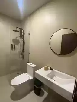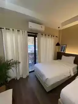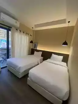 The room has 2 floors. If you stay on the 2nd floor, you have to climb a few stairs. The room is very new, clean, and the air conditioner is cool. It can accommodate 2 people. It has 2 single beds. The area is not too small. The bathroom has a shower with a water heater.