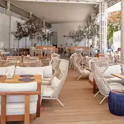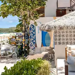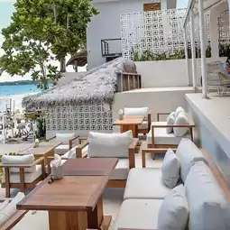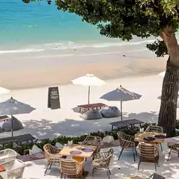 🏖 Winkks Beach Club is a luxurious beach club on Koh Samet that comes with a chic Balinese style decoration, emphasizing white and blue tones, contrasting with the turquoise sea and clean white sand. The atmosphere is great, like being in Bali. Plus, there are many photo spots here. No matter which angle you take, it will be beautiful and the light is good. There are also many seating areas to choose from, both indoor, which is cool, and outdoor by the beach, so you can experience the sea up close.