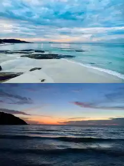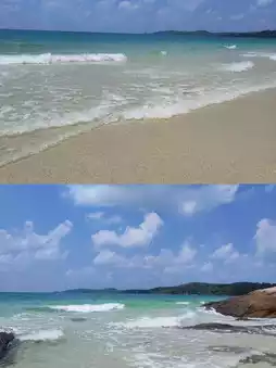 As the name suggests, the beach is fine and white, the sea is very blue, and it is shaped like a T. The north is very lively, and the south is very quiet. The island has low consumption, and the hotels are very tolerant.