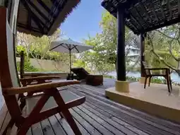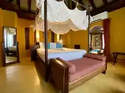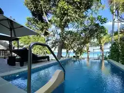 ðļ The âBeachfront Pool Villaâ is 100 sq.m. The villa has a high ceiling, so it feels airy and not cramped. This type of villa has a total of 11 houses lined up in front of Ao Kiew, so there is enough space between each villa, so it is private. The decoration is in a Balinese and Moroccan style. Use yellow, purple and red tones to perfectly contrast both the concrete structure and the real wood furniture.