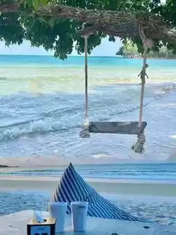 Stepping onto Koh Samet, the snow-white beach instantly comes into view. The delicate sand flows between your toes, as if it's nature's gentlest touch. Strolling along the beach, the coconut trees on the shore sway in the wind. The large leaves rustle, as if whispering a welcome. The azure sea is crystal clear. Layers of waves gently pat the shore, creating white foam.