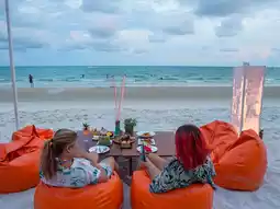 Samed Grandview Resort is a stylish modern resort located on Sai Kaew Beach. The resort offers seven types of rooms: Deluxe Grand Executive, Deluxe Classic, Deluxe, Thai House, Superior Garden View, Single Family Room, and Double Family Room. Each room type varies in size and comes with full amenities including air conditioning, television, hairdryer, refrigerator, towels, and free Wi-Fi. Guests can also enjoy a beachfront restaurant where they can relax, savor delicious food and drinks, and take in the breathtaking views of Sai Kaew Beach from bean bags on the shore. Additionally, there is live music every evening at 8 PM. For those looking for a chic and relaxing stay, Samed Grandview Resort is the perfect choice.
