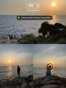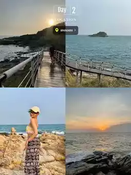 Day 1 📍Sawasdee-coco Khosamed: It is both an accommodation and a cafe, located on Sai Kaew Beach. Sit back and relax and enjoy the beautiful sea view. 🥤📍Ao Phrao: The western bay has beautiful water, beautiful photo spots, and a bridge for walking. Nearby, there is another beautiful sunset viewing point, Ao Phrao Sunset Viewpoint. This place is also very beautiful for taking pictures. 🌊📍Sunset view point: This is a popular sunset viewing point that everyone must check in at. ☀️📍Ploy Talay: A famous restaurant located on Sai Kaew Beach. Delicious food and a fire baton show. 🍤