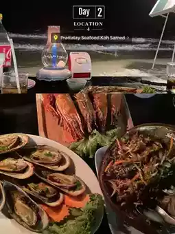 Day 2📍Brown Cabin Chocolate Cafe: A cute cafe with a great atmosphere. There are many beautiful photo spots. There are many snacks and drinks to choose from, especially the chocolate menu. 🍫📍Ride a motorbike around the island. The recommended beach is 🌊 Ao Noi Na: The northernmost part of the island. The sea is calm and the waves are not strong. 🌊 Ao Wong Duean: A lively bay with lots of accommodations and a good place to swim. 🌊 Ao Nuan: Clear water, not too strong waves, lots of rocks. 🌊 Ao Wai: Good waves, white sand, lots of people like to swim. 📍Laem Toei: A popular place to watch the sunrise and sunset, located at the end of the island. There is a bridge connecting it for easy walking. It is a very beautiful spot, don't miss it. ☀️📍Praitalay Seafood Koh Samed: A restaurant on Sai Kaew Beach. Delicious food, not a long wait.
