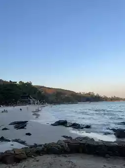 The atmosphere at Samed Beach is calm, friendly, and welcoming. The clear blue sky stretches above the turquoise sea, creating a peaceful, picture-perfect setting. The soft, golden sand feels warm under your feet, while the sound of gentle waves adds to the relaxing vibe.