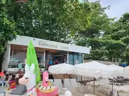 This resort is not a large resort. There are bungalow rooms and rooms in a building. Inside the resort, there is a cafe by the beach and a sitting area in front. Customers staying here can walk down to play in the sea. There are props and a corner for taking pictures on the beach.