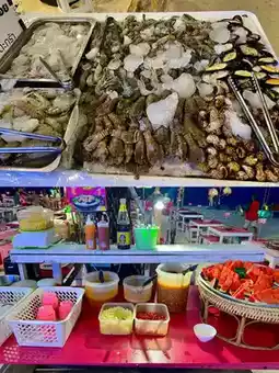 For the buffet line, there are both beef, pork, chicken and seafood such as squid, mantis shrimp, shellfish, shrimp, fish, etc. For those who like spicy food, there is also som tam for you to make yourself. But the highlight of this restaurant is the dipping sauce. There are 3 types to choose from. Everything is delicious.