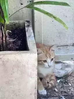There are cats near the hotel who often come to walk around and rest