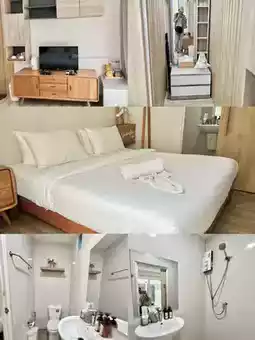 Sawasdee Coco, a place to stay on Sai Kaew Beach, Koh Samet that we really like. The decoration is cute and emphasizes white tones. There are many types of rooms to choose from. We booked a standard room for 2 gray bills and 1 purple bill, with change. Breakfast is included. It's just a few steps to the sea.