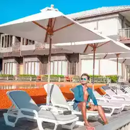 With various facilities and, of course, a swimming pool by the sea with beautiful colors