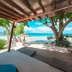 This is a room that has one villa located in front of the beach by the sea.