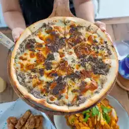 For food, there are both Thai, fusion and Italian food. I've tried it. The beef fried rice is very delicious. The truffle mushroom pizza is good. The aroma hits the nose. I really like it.