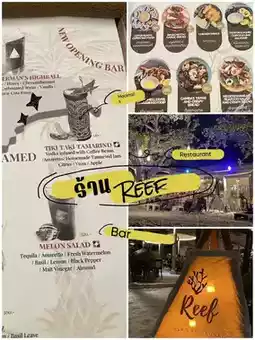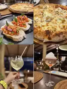 Appetizers ✨ Banana blossom salad (full of fresh vegetables, with lychees to cut the sour and sweet taste and enhance the aroma of each bite to create a variety of flavors in one bite) ✨ Crispy lotus root with curry sauce (chewy and soft lotus root) ✨ Calamari squid ✨ Red curry with sea bass (refreshing with fruits such as grapes and fresh vegetables) ✨ Bruschetta garlic bread ✨ Pizza, freshly baked seafood