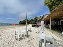 put cushions to sit and listen to chill music, watch the sea breeze. But when night falls, there is a fire baton show, alternating with a DJ playing records to dance until tired.