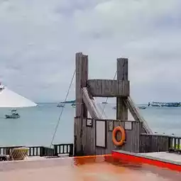 A beautiful beachfront accommodation with a great atmosphere and delicious food.