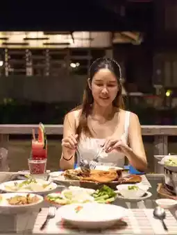 Baan Ploy Samed Restaurant, a Thai restaurant with seafood dishes that were full for every meal. The service was also impressive.