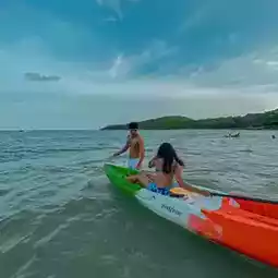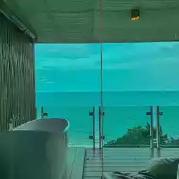 🌅 Private beach accommodation on Koh Samet, when you open the door, you will see a 180-degree sea view. There is nothing more awesome than this at Sangthian Beach Resort. This room is a Panorama room with a very beautiful sea view with a bathtub for us to soak in and enjoy the beautiful sea view. The resort is very private. The sea water is very clear, plus the white sand beach, no matter how you take a picture, it will be great. There are also many activities to do, such as kayaking, snorkeling, playing SUP, and in the evening, there is a beach bar, great live music, and a fire baton show that is very beautiful. I really like the show here. For those who are hungry, the resort has a lot of food menus. I recommend the sesame oil jellyfish with seafood sauce, it's very spicy. The service is very impressive. The service is very good from the moment you step foot in to check in. Really appreciate this, very impressed 🧡