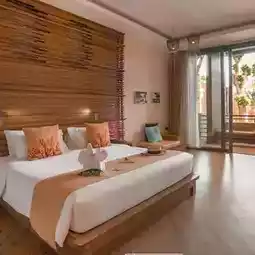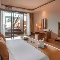 The room we stayed in is about 45 sq m. The interior is decorated with a combination of light shades and natural materials. The bathroom is quite large and has a bathtub in the bathroom. The room has a private balcony with a Day Bed. Just open the door to the balcony and feel the sea breeze.