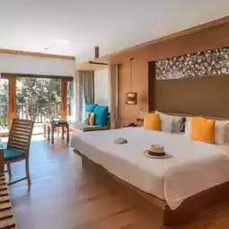 We stayed in the Premier Seaview room. This room is about 41 sq m. Decorated in a contemporary style, it has a sea view and a private balcony. You can come out and sit and look at the pool and the sea at the same time.
