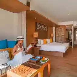 Breeze Restaurant is the only restaurant here. It serves all-day dining. In the evening, I would like you to come and eat in this room because another highlight is the sunset viewpoint on this beach. It is considered the most beautiful on Koh Samet. Sitting and having dinner with this view is the best.