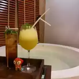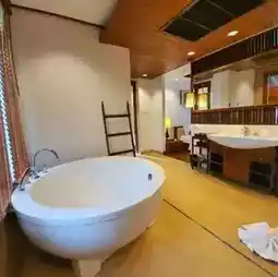 The bathroom and bathtub are beautiful and the atmosphere is very romantic, as there's no door separating the rooms. You can order cocktails in the room and sip while soaking in the tub. It's truly amazing! #beachvacation #kohsamuivacation