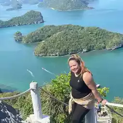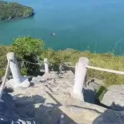 Atmosphere/Place - Pha Chan Charat Viewpoint, one of the tourist attractions with a highlight as a viewpoint on the high mountain of Ang Thong National Marine Park. Walking up to the viewpoint is challenging for your legs to walk up to the cliff that is 550 meters high, but it is worth it because the beautiful view where you can see many small islands of Ang Thong National Marine Park will make you forget your tiredness.