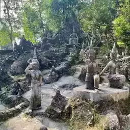 Namtok Ta Nim Khao Pom or Ta Nim Magic Garden is another place on Koh Samui. The mysterious Buddha statue garden is a private sculpture on the top of Khao Pom, one of the highest peaks on Koh Samui. Here, the nature is beautiful and complete. I recommend coming here. It is another landmark of Koh Samui. It is not difficult to travel. There are many tourists. The waterfall inside is a small, beautiful waterfall. I recommend it. #travel #thailand #beautiful islands in Thailand