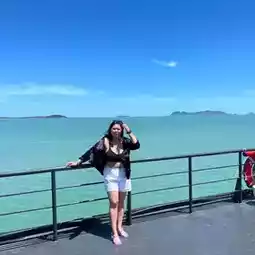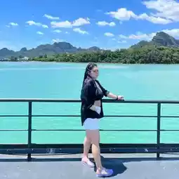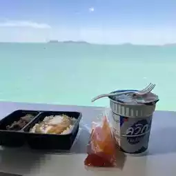 Seatran Ferry has a 3-in-1 package: take a van to Donsak Pier - take a ferry across the river to Koh Samui - take a van to your hotel. It's super convenient, and they'll take you straight to your accommodation on the island. The price is also not expensive, only 550 baht per person. Plus, you don't have to wait long. There are boats leaving every hour. At the pier, there are restaurants, minimarts, and coffee shops where both Thais and foreigners come to sip tea or coffee. It's time to get on the boat. This is my first time taking a ferry across the river. Wow, the boat is so big and can carry both cars and people. Let me tell you, the boat is so full of cars. Next time, I think I'll have to rent a car from Surat Thani and take the ferry to Koh Samui like this. But let me tell you, if you want a car, you have to book in advance because the boats are always full.