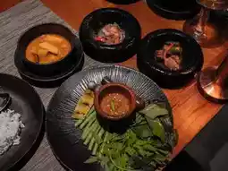 - Main ( แกงส้มปลาเต๋าเต้ยยอดมะพร้าวออดิบ / ผัดกะปิสะตอกุ้ง / หมูฮ้อง / น้ำพริกกะปิ )