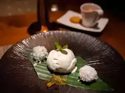 - ขนมโค เสิร์ฟพร้อมไอศรีมกะทิ (วันที่เราไปมีโชว์ชาชักให้ลองชมด้วย )