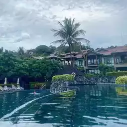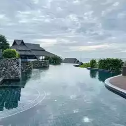 The lobby has a large swimming pool, and as mentioned, the resort is located on a hill, making the infinity edge pool look connected to the sea. The atmosphere is great.